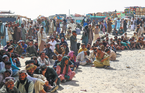 شهروندان افغان روز شنبه در گذرگاه مرزی چمن در استان بلوچستان پاکستان منتظر ثبت نام هستند.