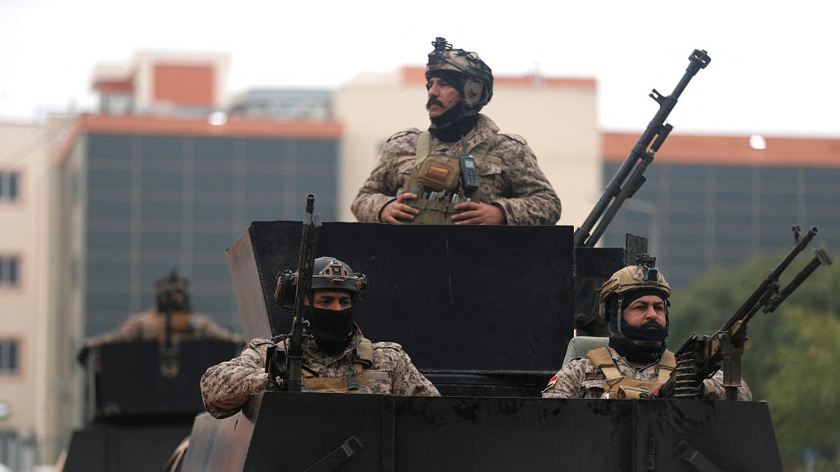 سربازان عراقی در 26 مارس 2026 پس از جنگ ایران با حملاتی که عراق را هدف قرار دادند گسترش یافتند. (عکس از احمد الربیعی/ خبرگزاری فرانسه از طریق گتی ایماژ.)