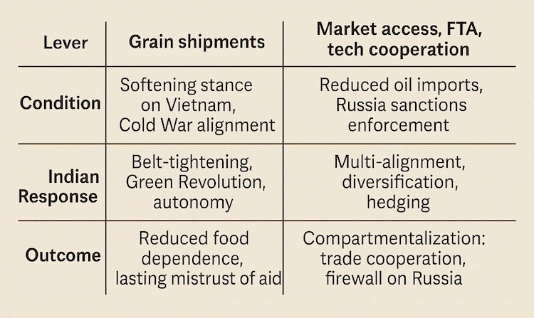 استفاده اتحادیه اروپا از تاکتیک های مشروط خطر تکرار اشتباهات دوران PL-480 را با دست کم گرفتن اهرم خود و دست کم گرفتن تعهد هند به خودمختاری در پی دارد.