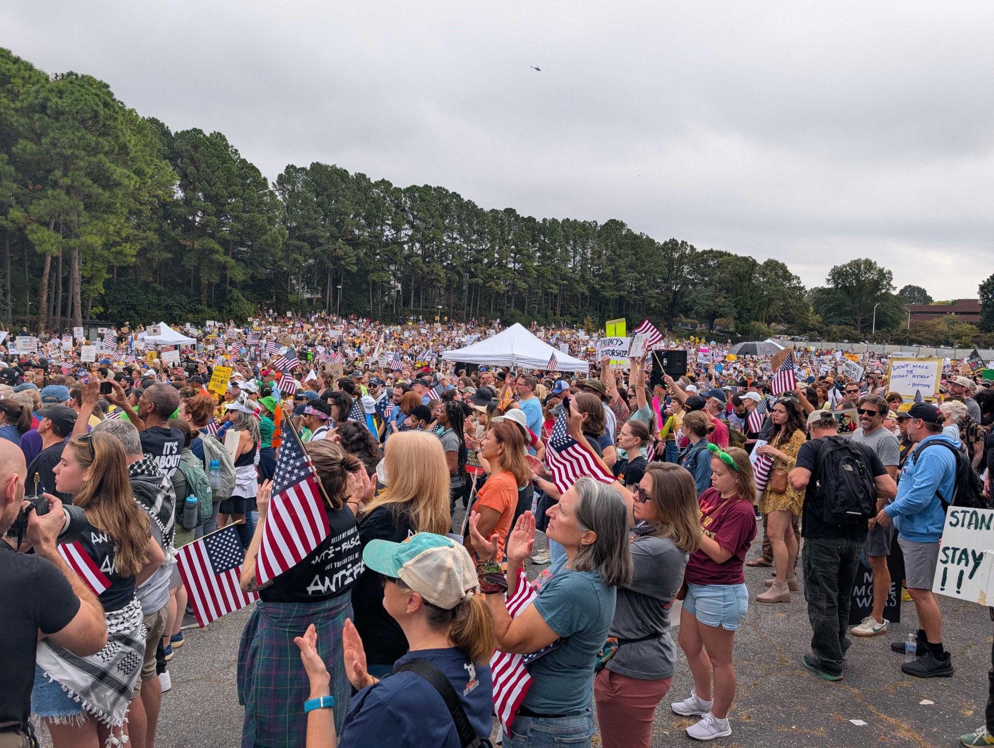 سازمان دهندگان تخمین می زنند که 17000 نفر برای تظاهرات نه پادشاهان در آتلانتا در روز شنبه، 18 اکتبر 2025 شرکت کردند. (Alander Rocha/GeorgiaRecorder.com)