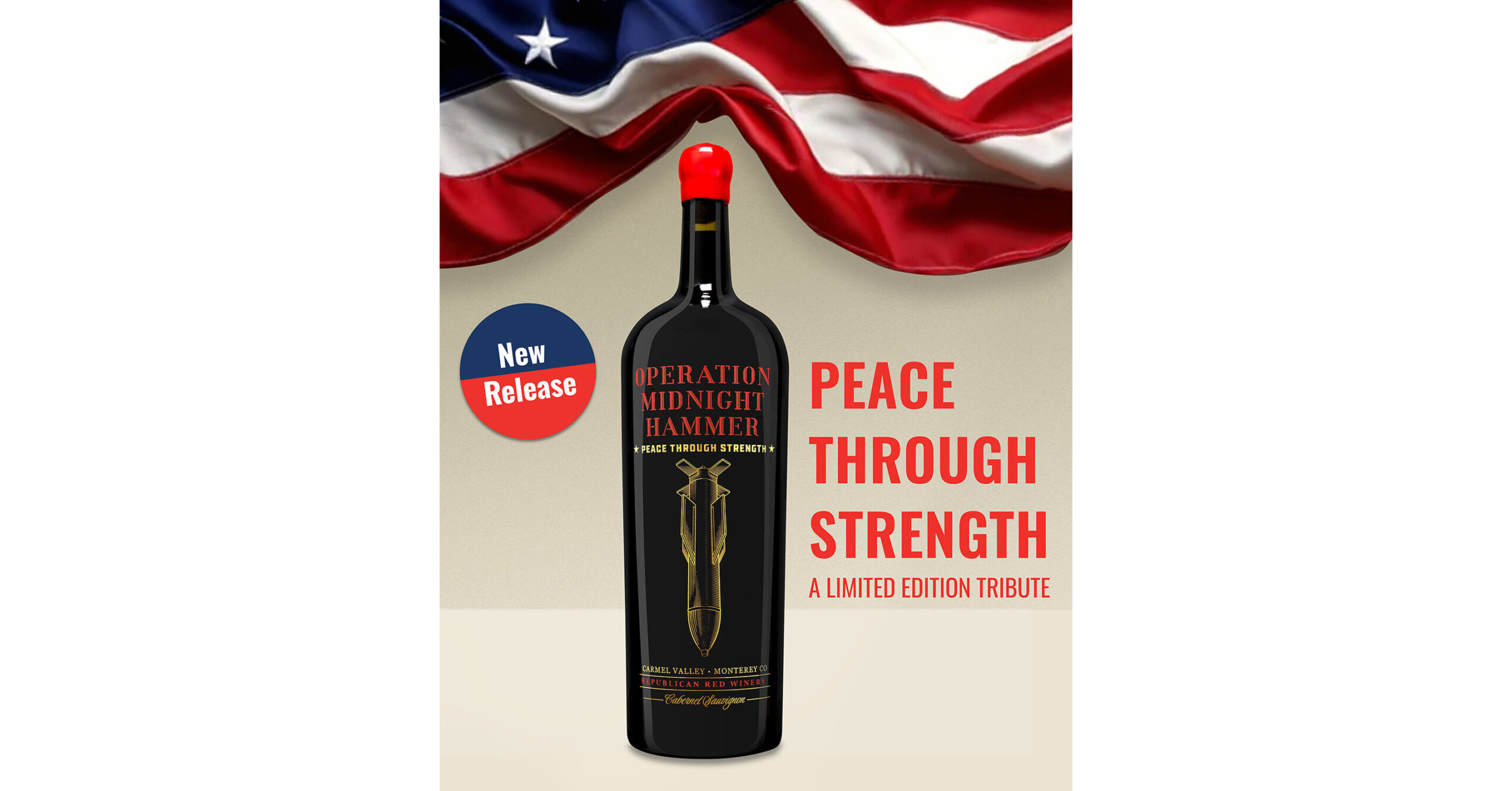 با توجه به توافقنامه صلح تاریخی رئیس جمهور ترامپ در خاورمیانه، شراب سازی قرمز جمهوری خواه با افتخار انتشار سنگر شکن خود را معرفی می کند، عملیات چکش نیمه شبکابرنه سووینیون 1.5 لیتری (مگنوم) با نسخه محدود که نمادی از دکترین پایدار آمریکا است. صلح از طریق قدرت.