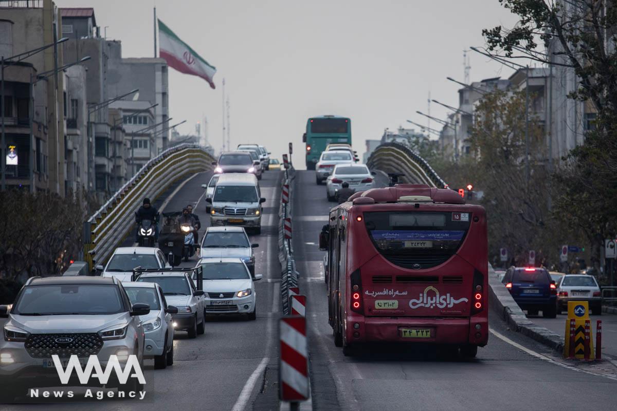 نمای کلی از ترافیک ، اتومبیل ، اتوبوس ، BRT و تاکسی در خیابان در تهران ، ایران دسامبر ، 2024. Majid Asgaripour/Wana (آژانس خبری آسیا غربی)