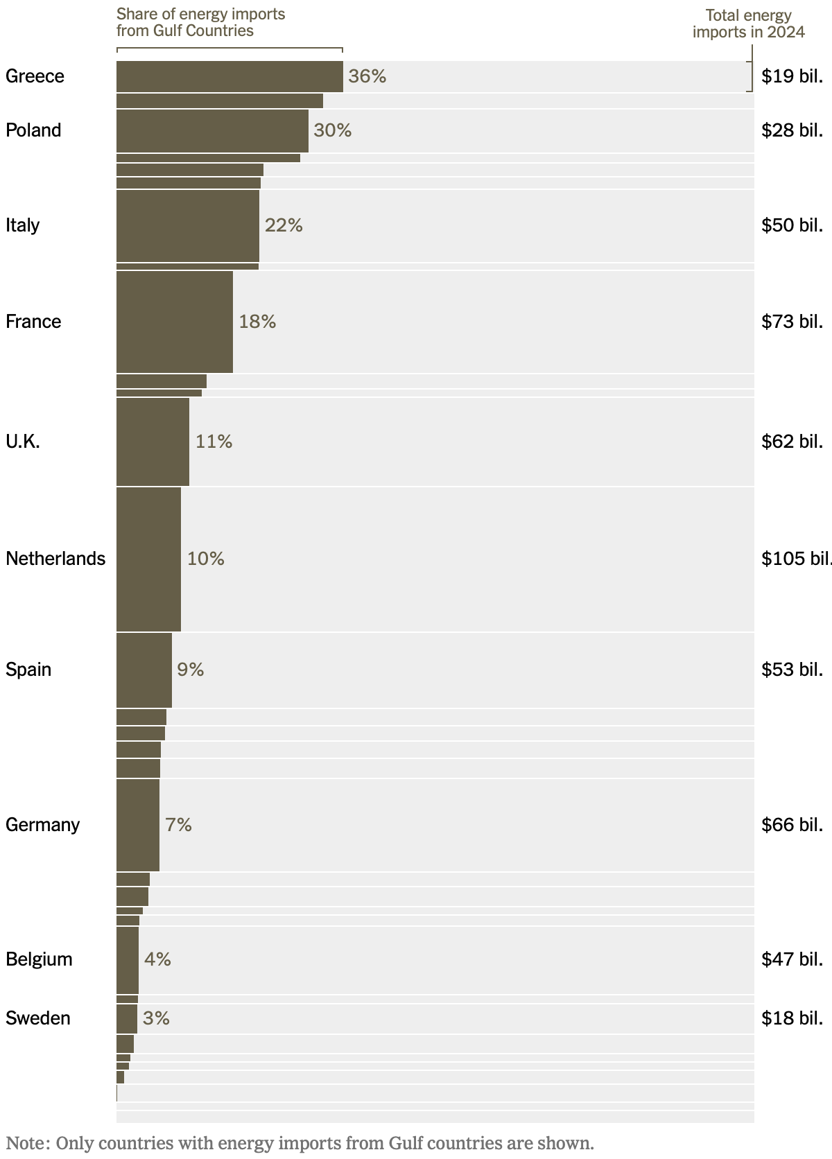 لازارو گامیو و جاش هولدر برای نیویورک تایمز واردات انرژی را بر اساس کشور و کشور تقسیم می کنند درصدی که از خاورمیانه می آید.