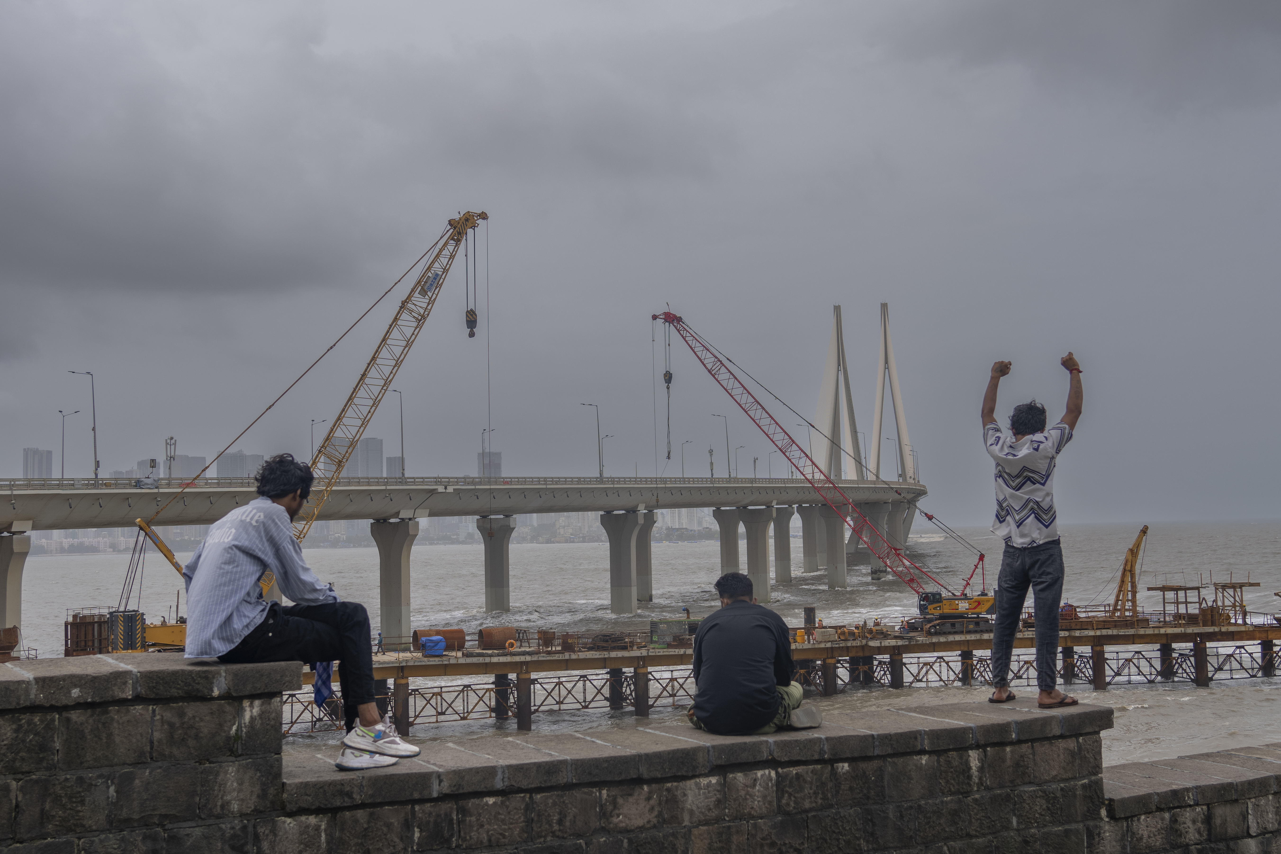 مردم در 24 ژوئیه 2025 در بمبئی، هند، امواج دریای عرب را تماشا می کنند. (عکس / AP)